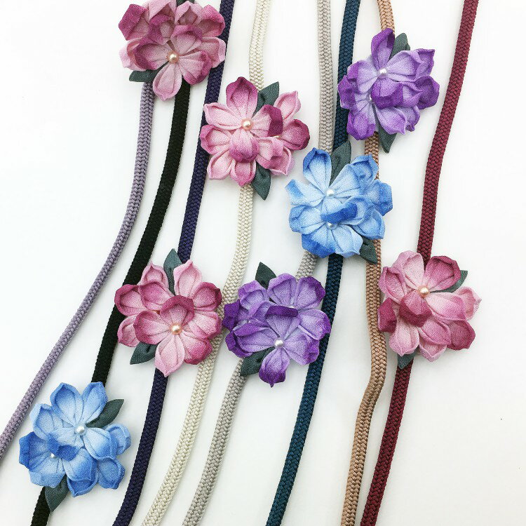 組み紐 帯締め 飾り紐 京組紐 くみひも 日本製 浴衣 着物 半幅帯 兵児帯 夏着物 大正ロマン レトロ あじさい 紫陽花 つまみ細工 パール グラデ ラベンダー ニュアンスカラー