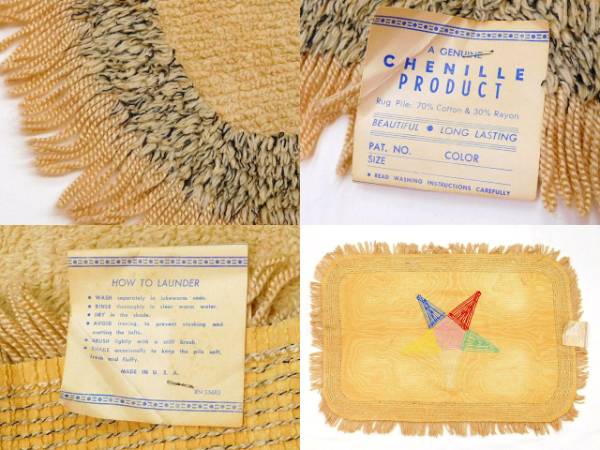 こちらは、大変貴重なフリーメイソン逆五芒星イースタンスター東方の星のUSA製シェニール織ラグマットになります。