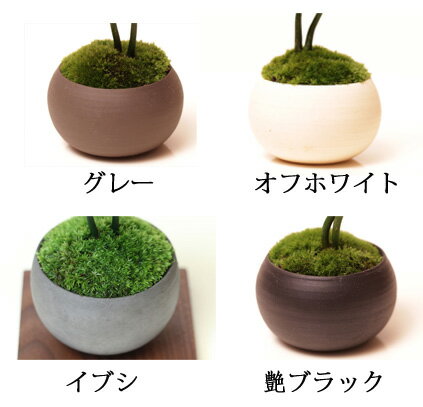 マットホワイト、艶ブラック、グレー色は急須で有名な常滑焼の窯で製作している当店オリジナル鉢です。