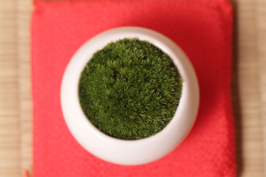 色が悪くなったり調子が悪そうなときは盆栽から苔をはがし、水道の流水の下で軽く握り洗いをしてください。